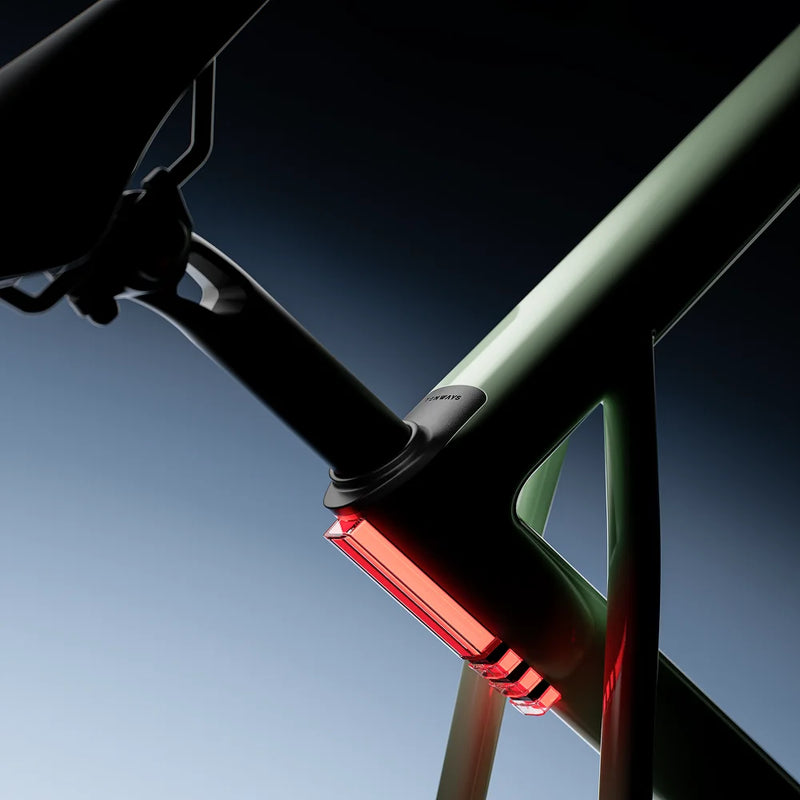 El atrevido cuadro en forma de paralelogramo es foco de todas las miradas y las flamantes luces combinan estilo y visibilidad. Un diseño que no sacrifica el placer de pedalear.