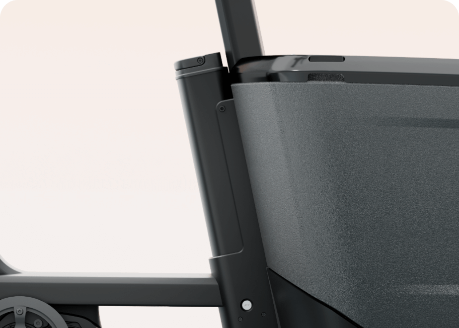 De fiets wordt geleverd met twee verschillend gekleurde regenhoezen voor de bagagebox, zodat je de hoes op elegante wijze aan jouw stijl en die van je passagiers kunt aanpassen. Naast de standaard zwarte kleur wordt er een extra groene hoes bij je bestelling geleverd.