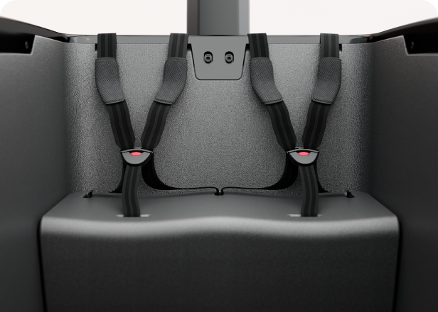 Volop ruimte voor veilig vervoer van elke vracht. De bagagebox met een capaciteit van 800 liter is voorzien van twee sets vijfpunts veiligheidsgordels. En die zijn milieuvriendelijk, want volledig biologisch afbreekbaar.